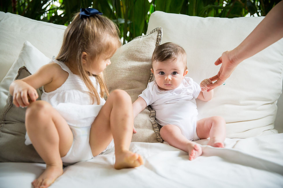 Florence and Hero (the dog) are doting older siblings. What a lucky boy!